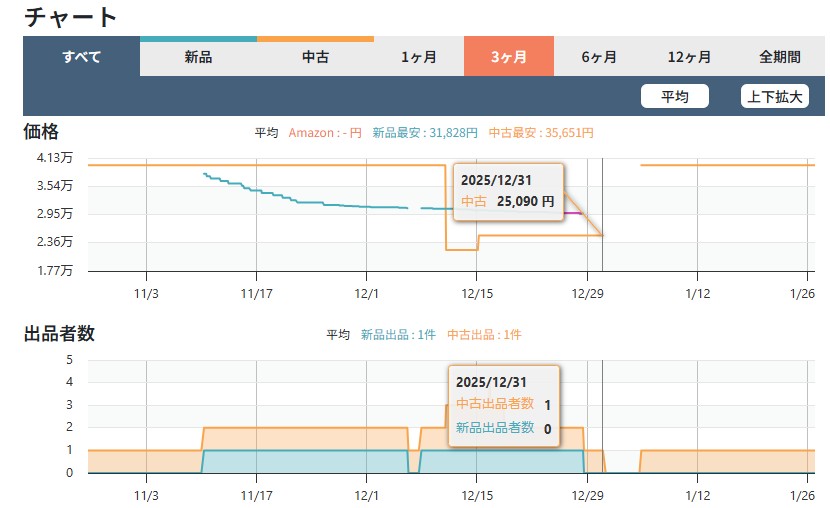 新品29800円に対し、わたしは中古25090円で売り抜けました(※まあまあ高値付けです)。